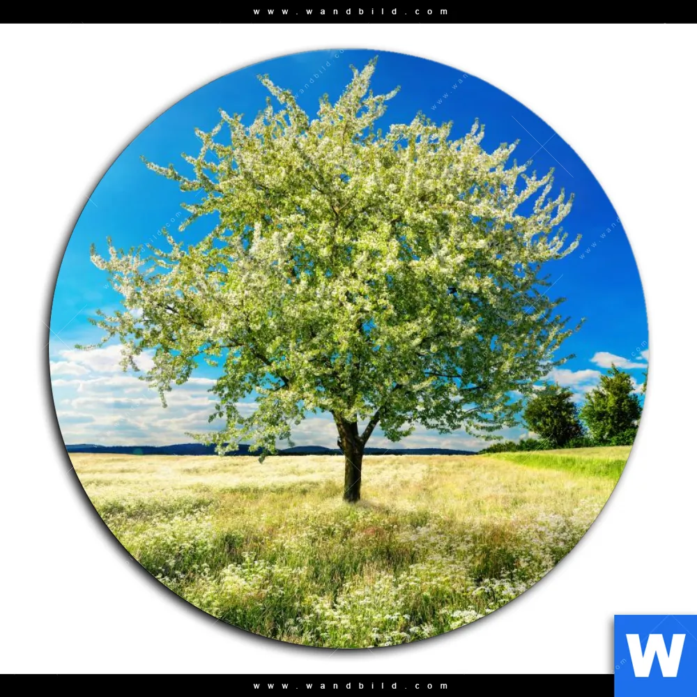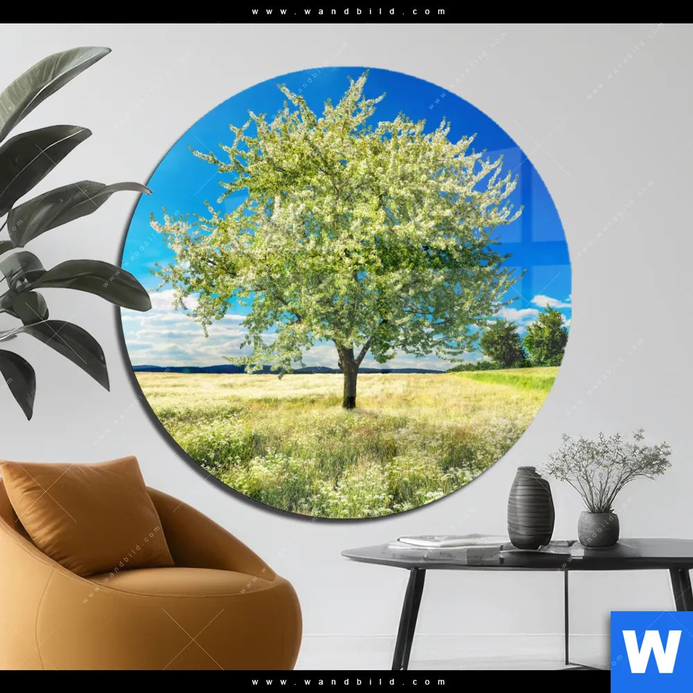 Acrylglasbild | Wiese mit blühendem Baum | Rund