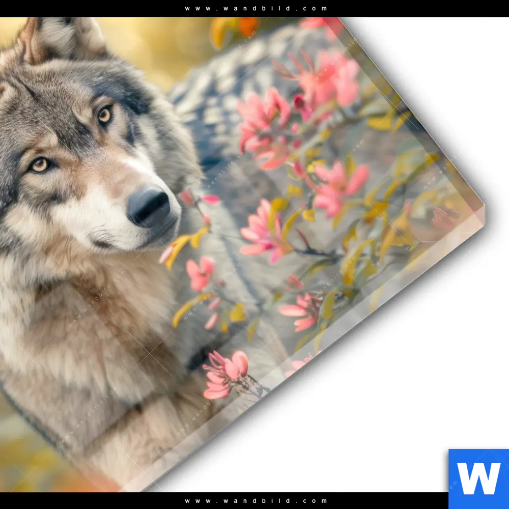 Acrylglasbild | Wolfsblick im Frühling | Quadrat