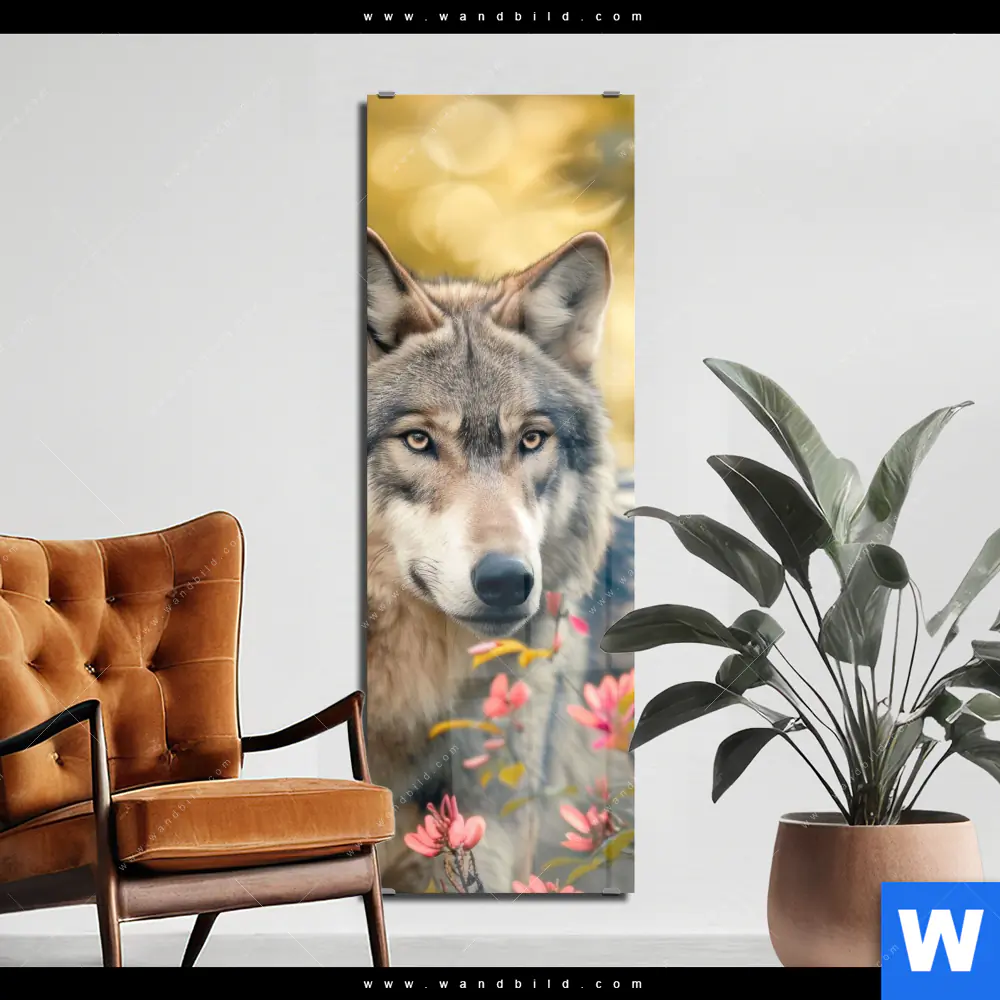 Acrylglasbild | Wolfsblick im Frühling | Schmal
