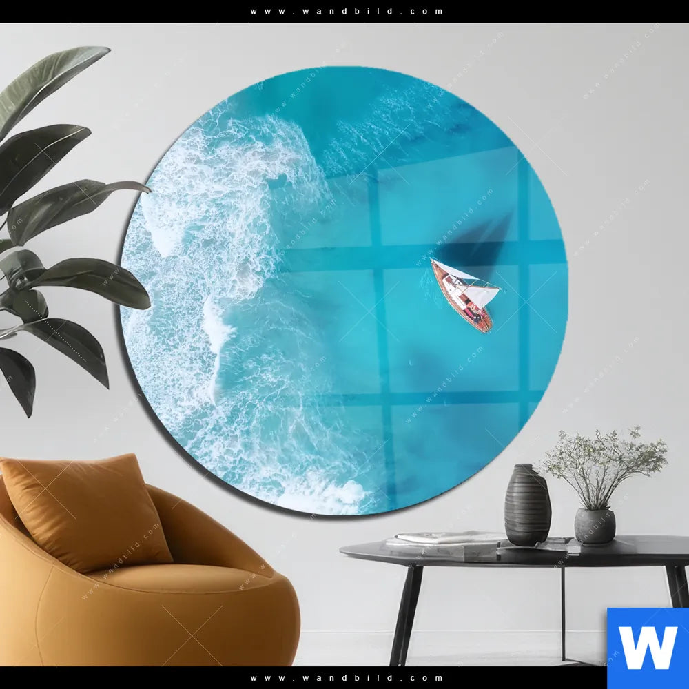Acrylglasbild | Yacht im Meer | Rund