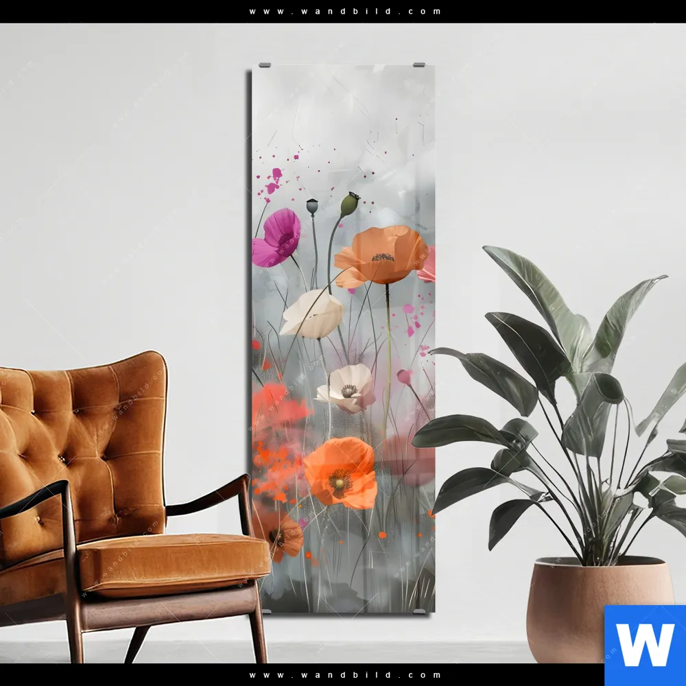 Acrylglasbild | Zarte Mohnblumen im Wind | Schmal