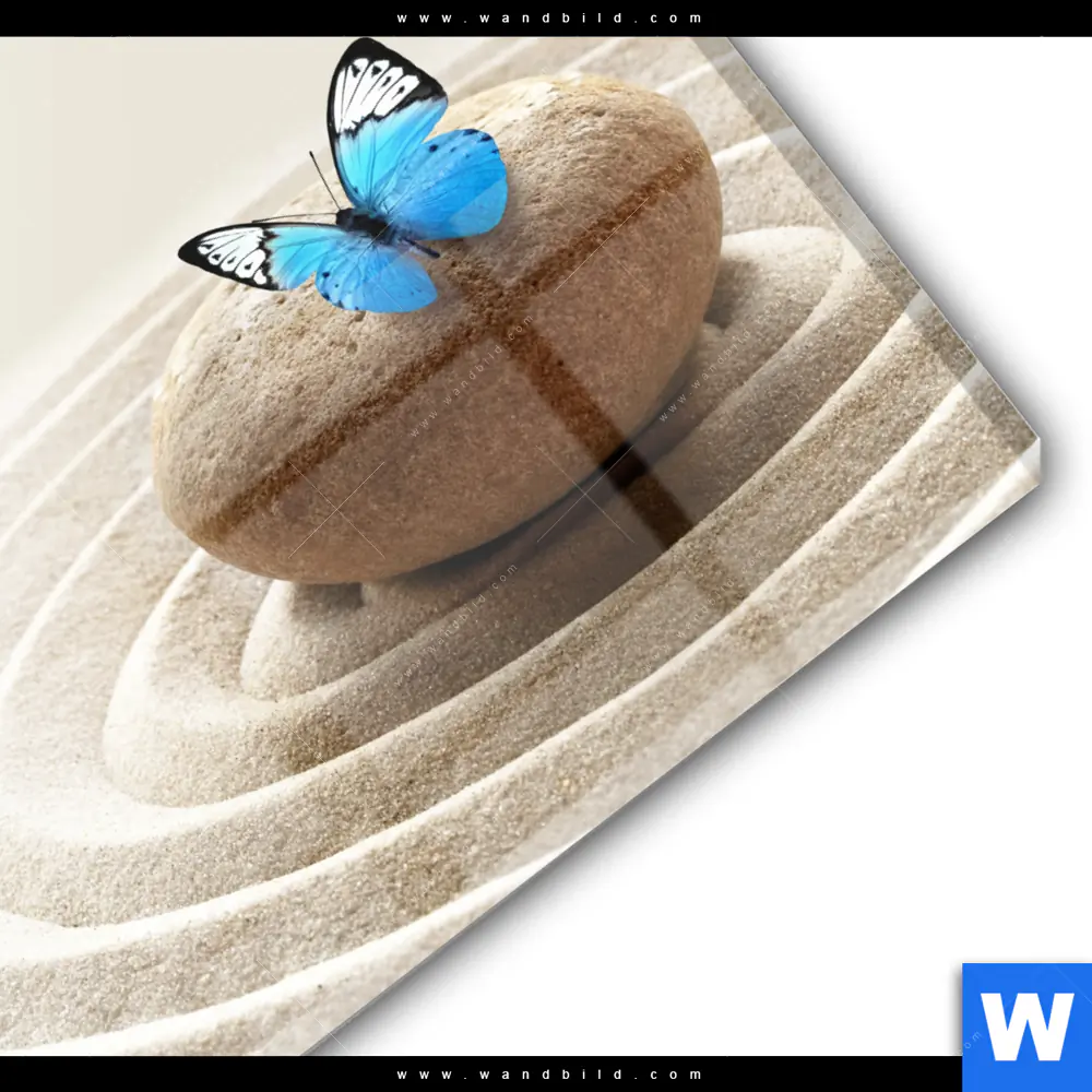 Acrylglasbild | Zen Stein mit Schmetterling | Quadrat