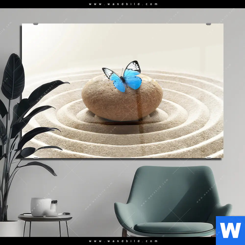 Acrylglasbild | Zen Stein mit Schmetterling | Querformat