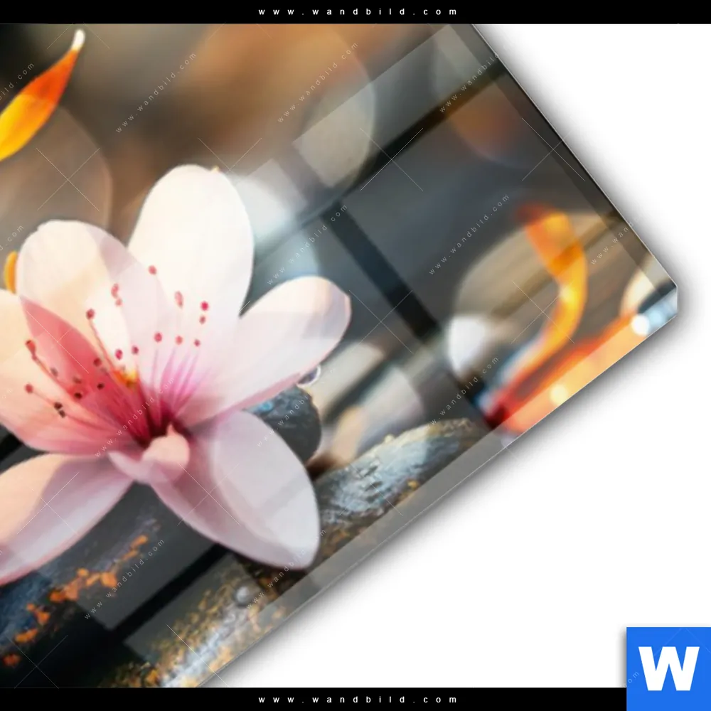 Blumen - Botanik, Buddha - Feng Shui Glasbild inkl. vormontiertem Rückrahmen