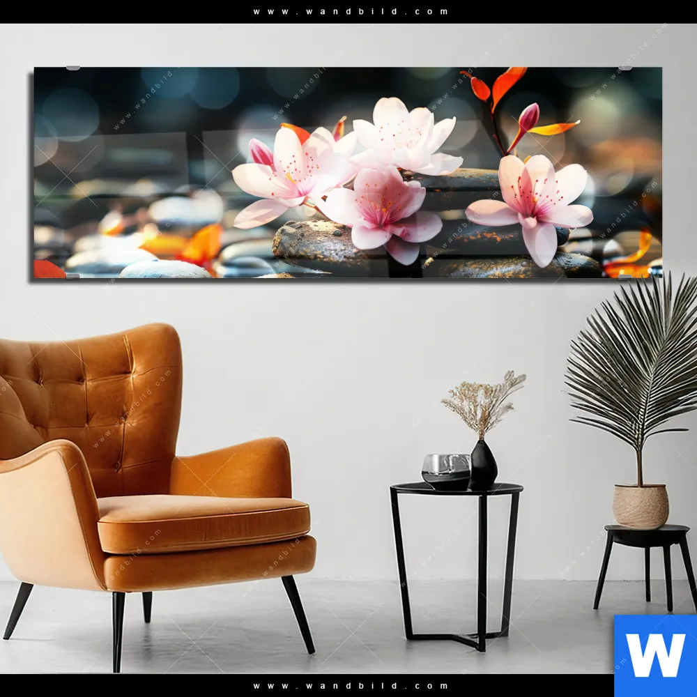 Acrylglasbild | Zen Steine mit Blumen | Panorama