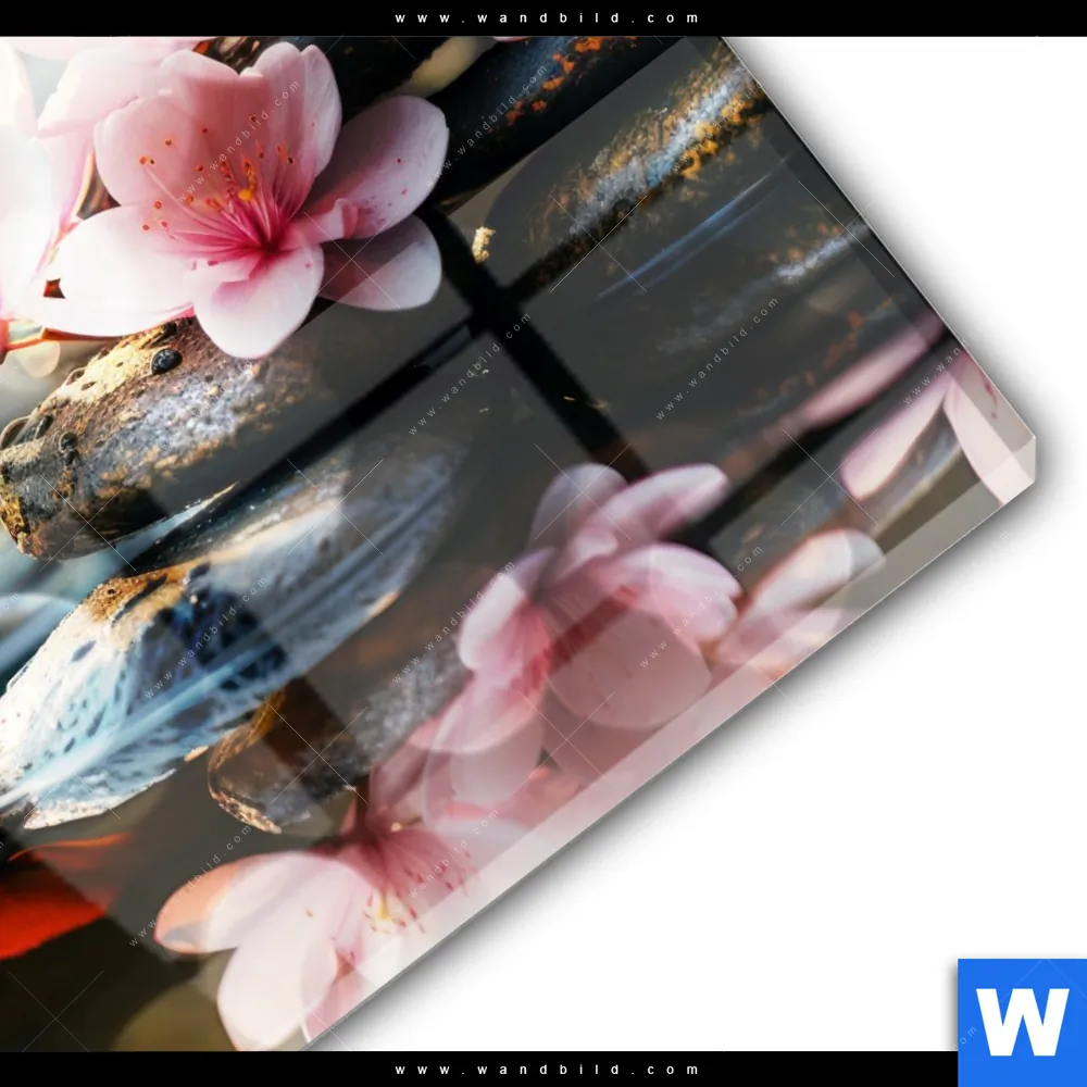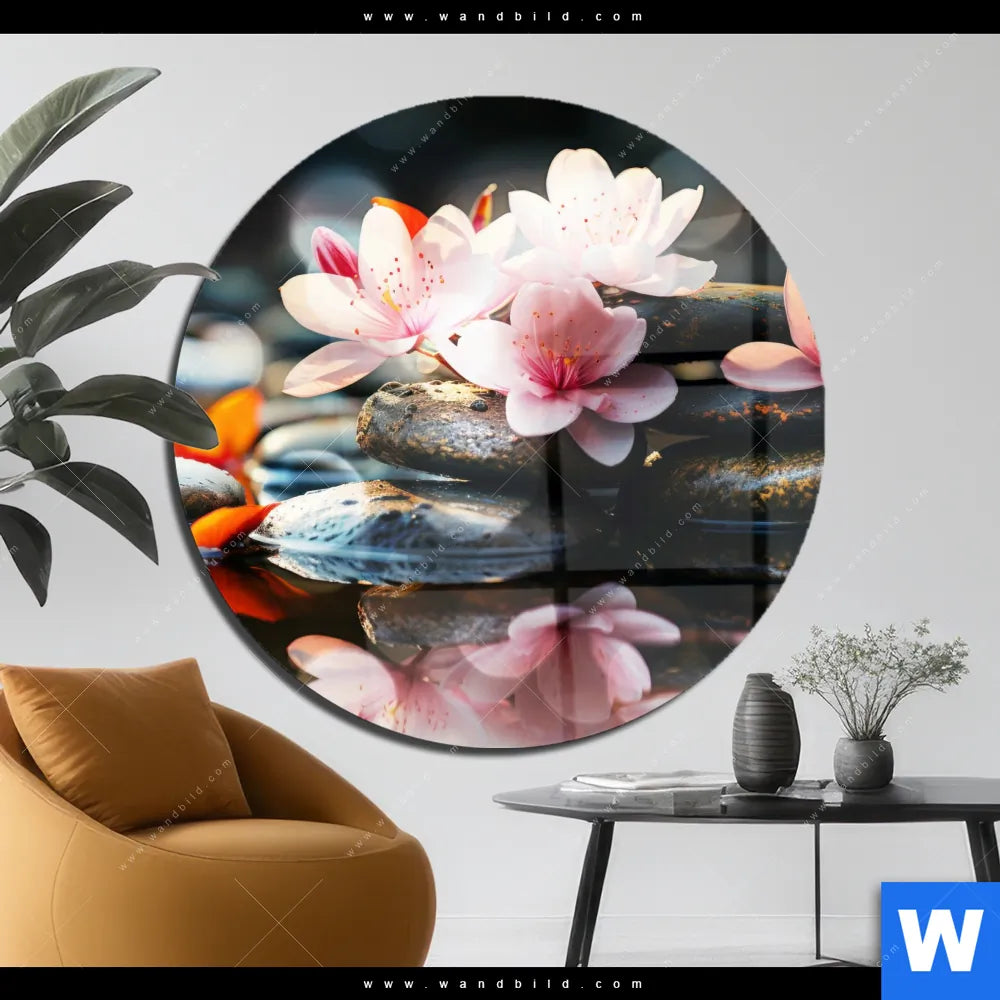 Acrylglasbild | Zen Steine mit Blumen | Rund