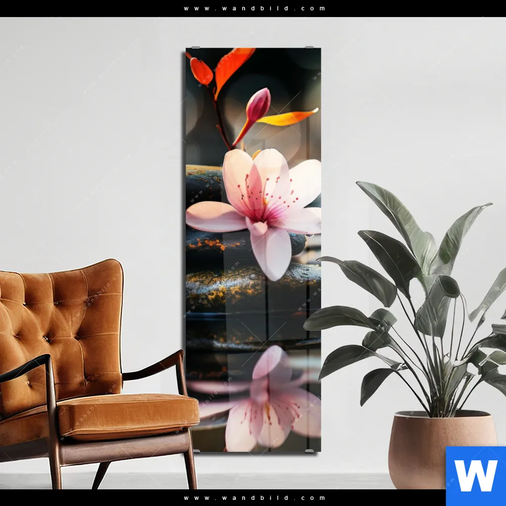 Acrylglasbild | Zen Steine mit Blumen | Schmal