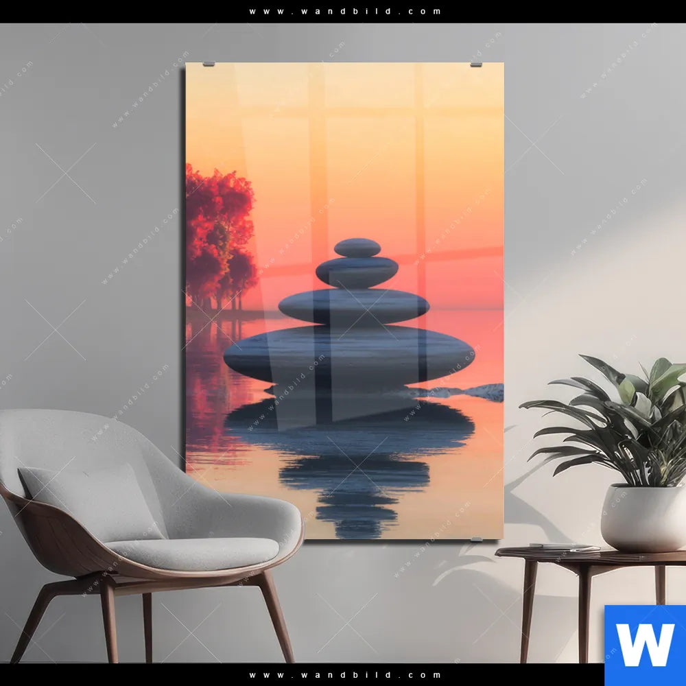 Acrylglasbild | Zen Steine & Sonnenuntergang | Hochformat