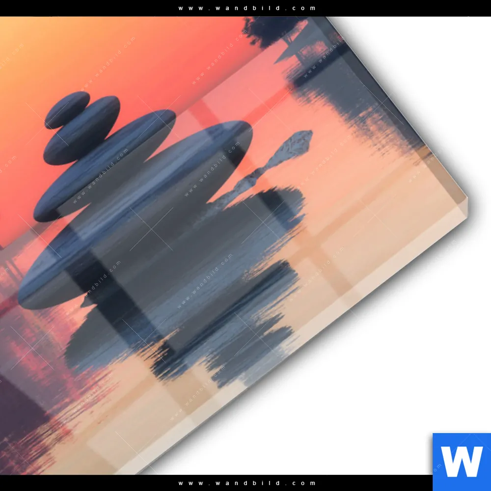 Acrylglasbild | Zen Steine & Sonnenuntergang | Quadrat