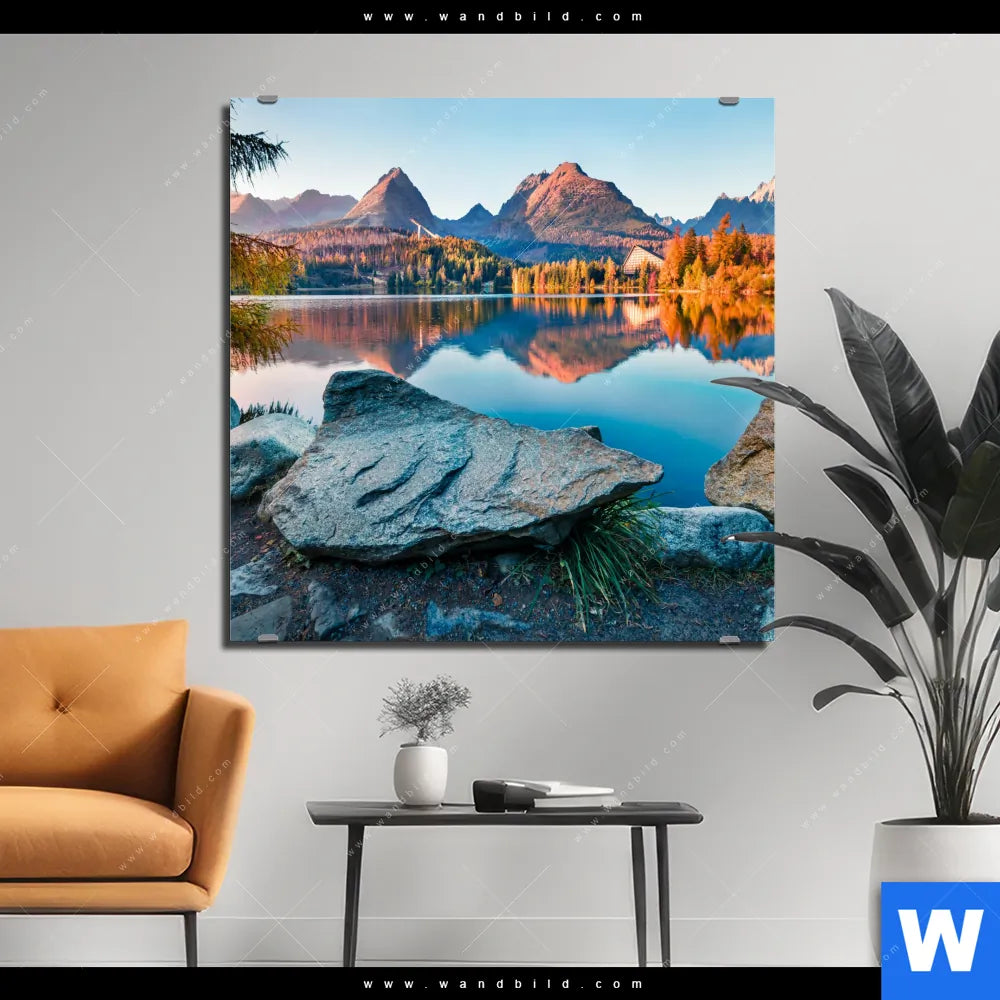 Alu-Dibond Bild | Abendszene mit Bergen und See | Quadrat