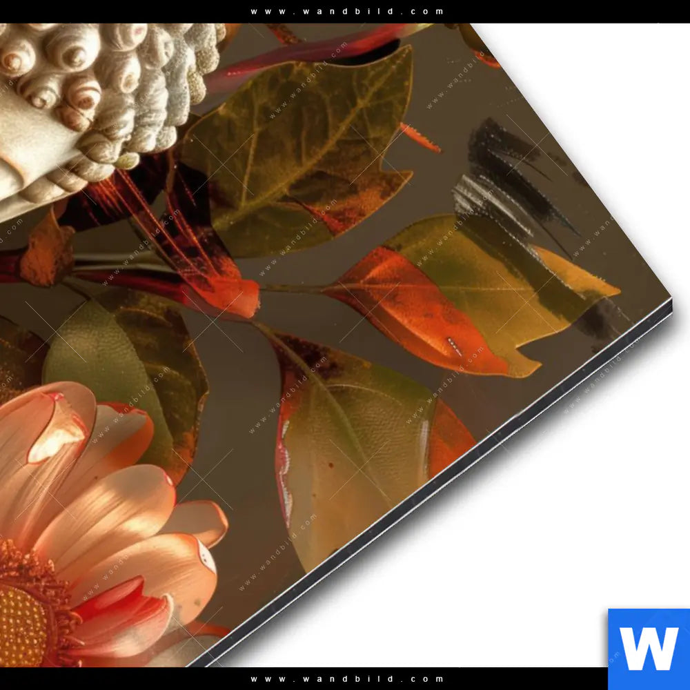 Alu-Dibond Bild | Abstrakter Buddha & Blumen | Hochformat