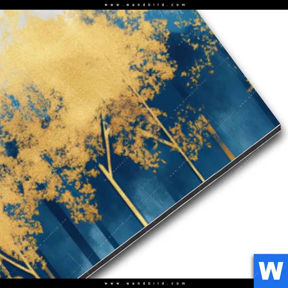 Alu-Dibond Bild | Abstrakter Wald - Blau & Gold | Panorama