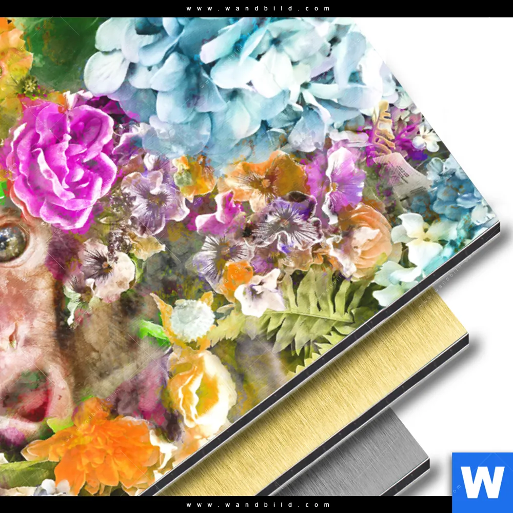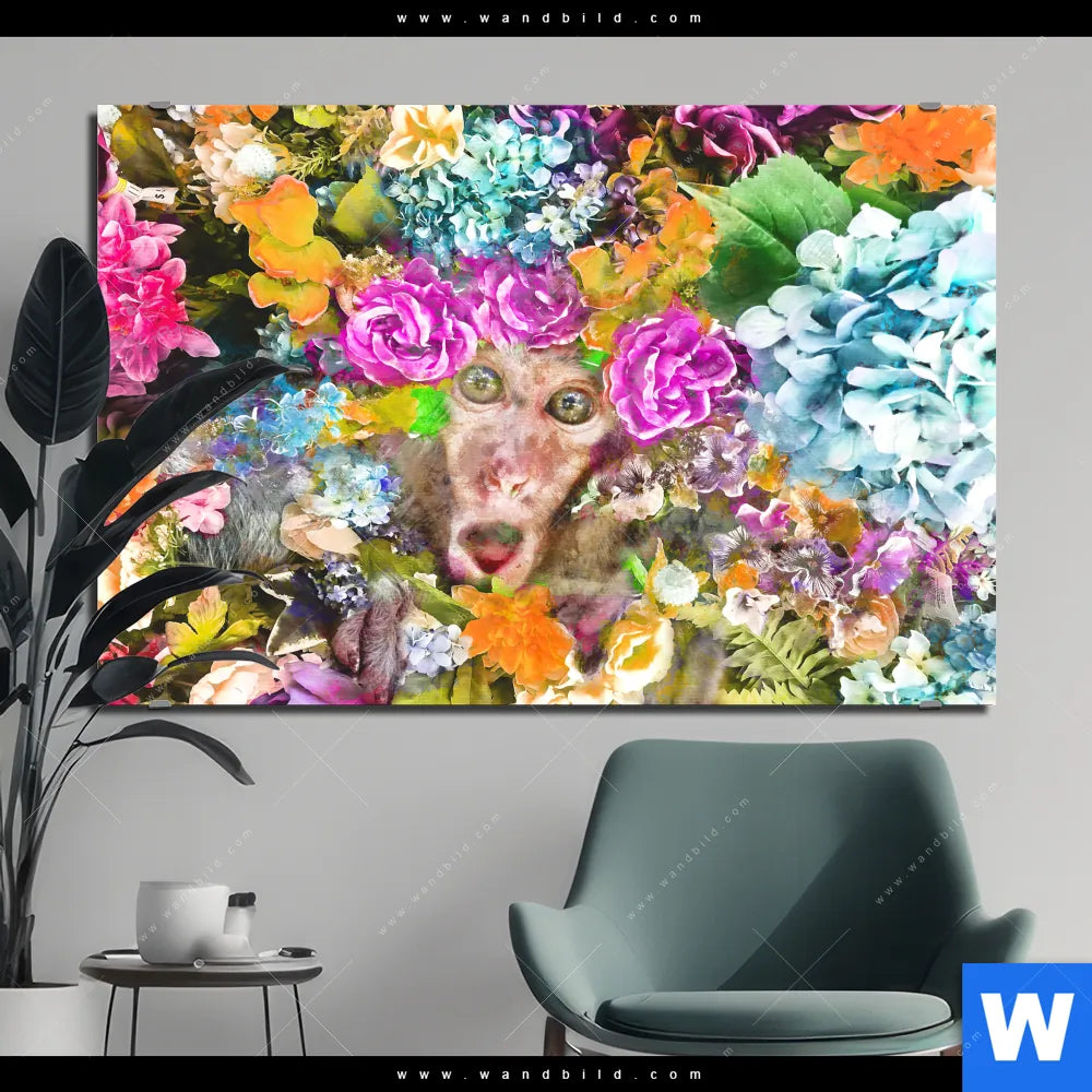 Alu-Dibond Bild | Äffchen & Blumen | Querformat