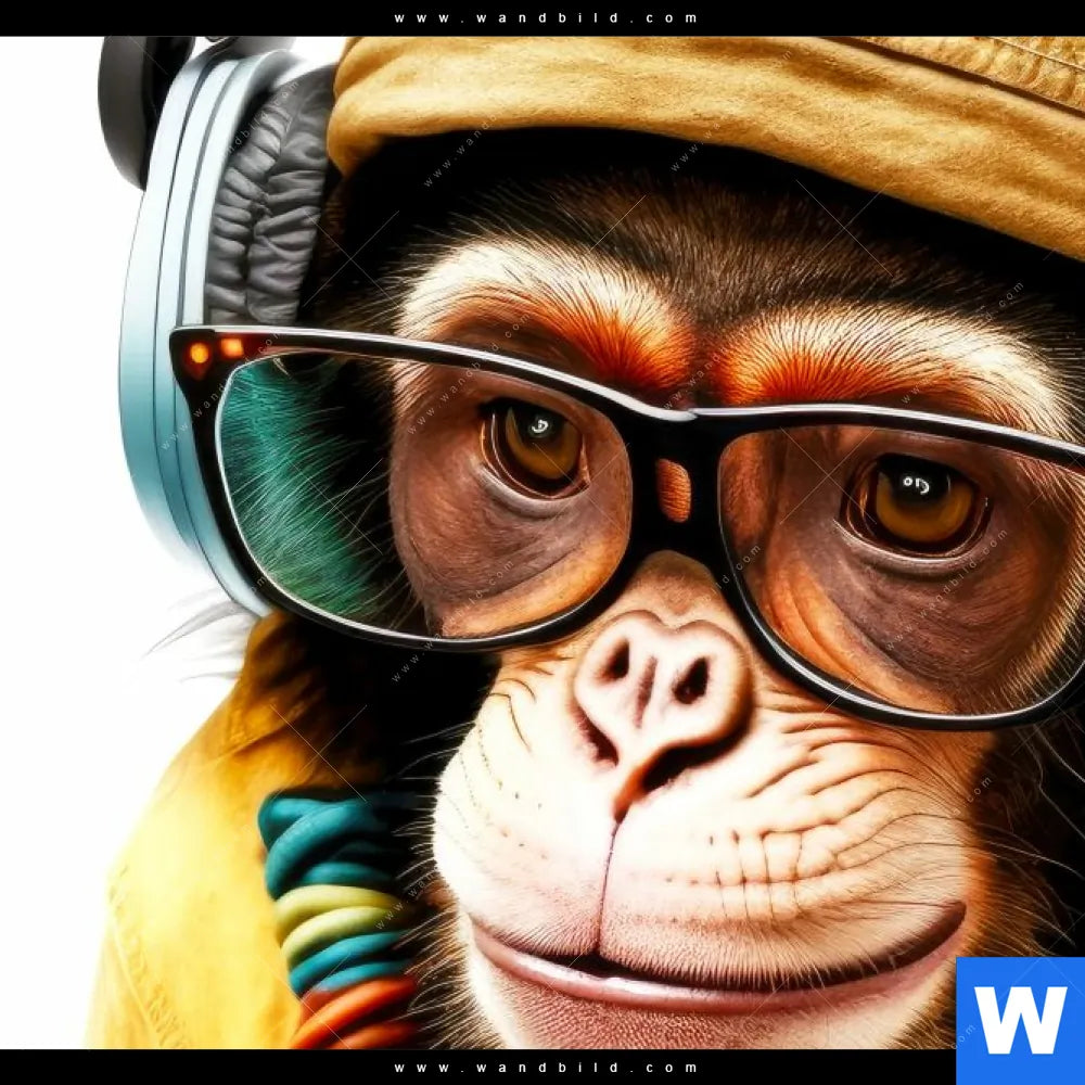 Alu-Dibond Bild | Affe mit Kopfhörern & Brille | Querformat