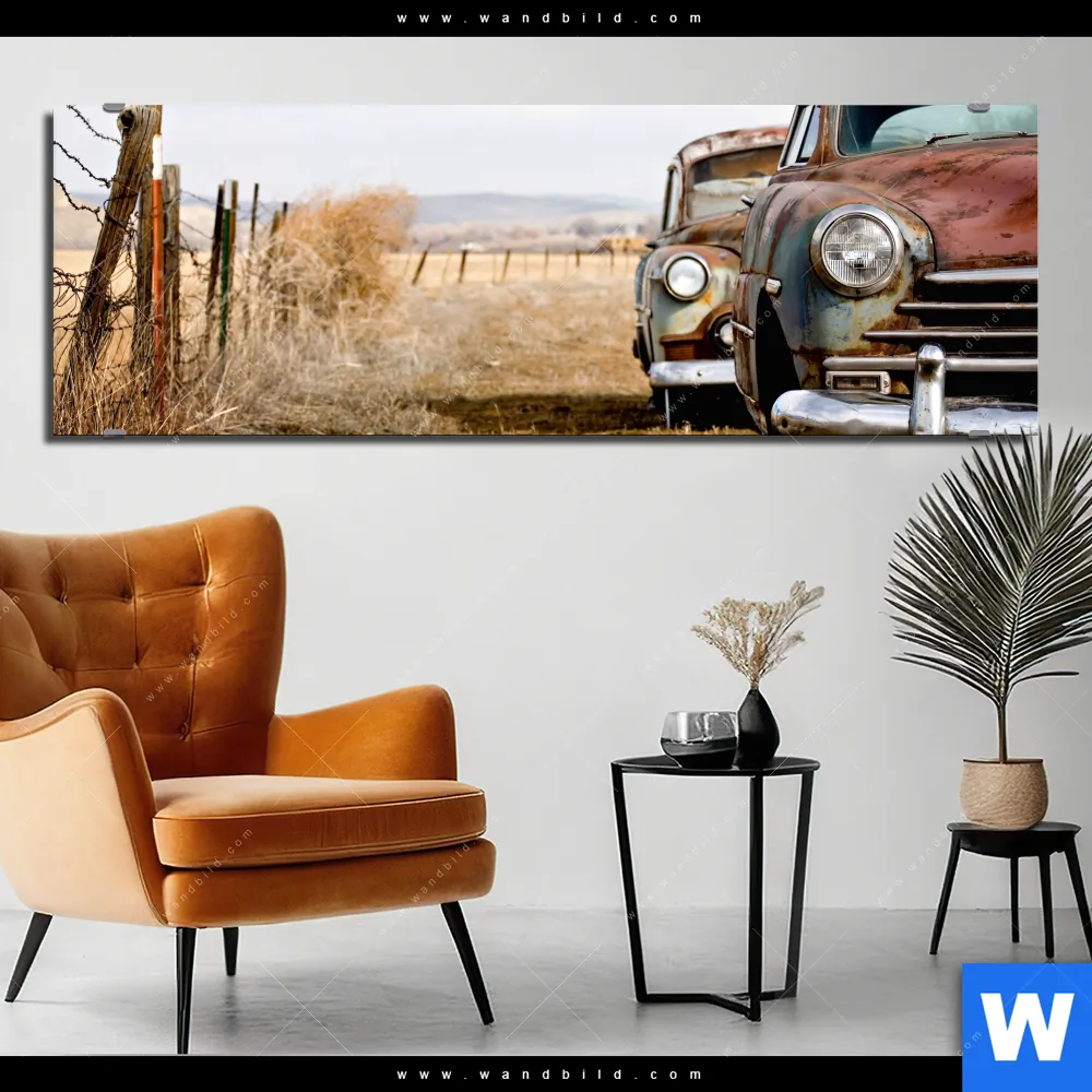 Alu-Dibond Bild | Alte rostige Autos | Panorama