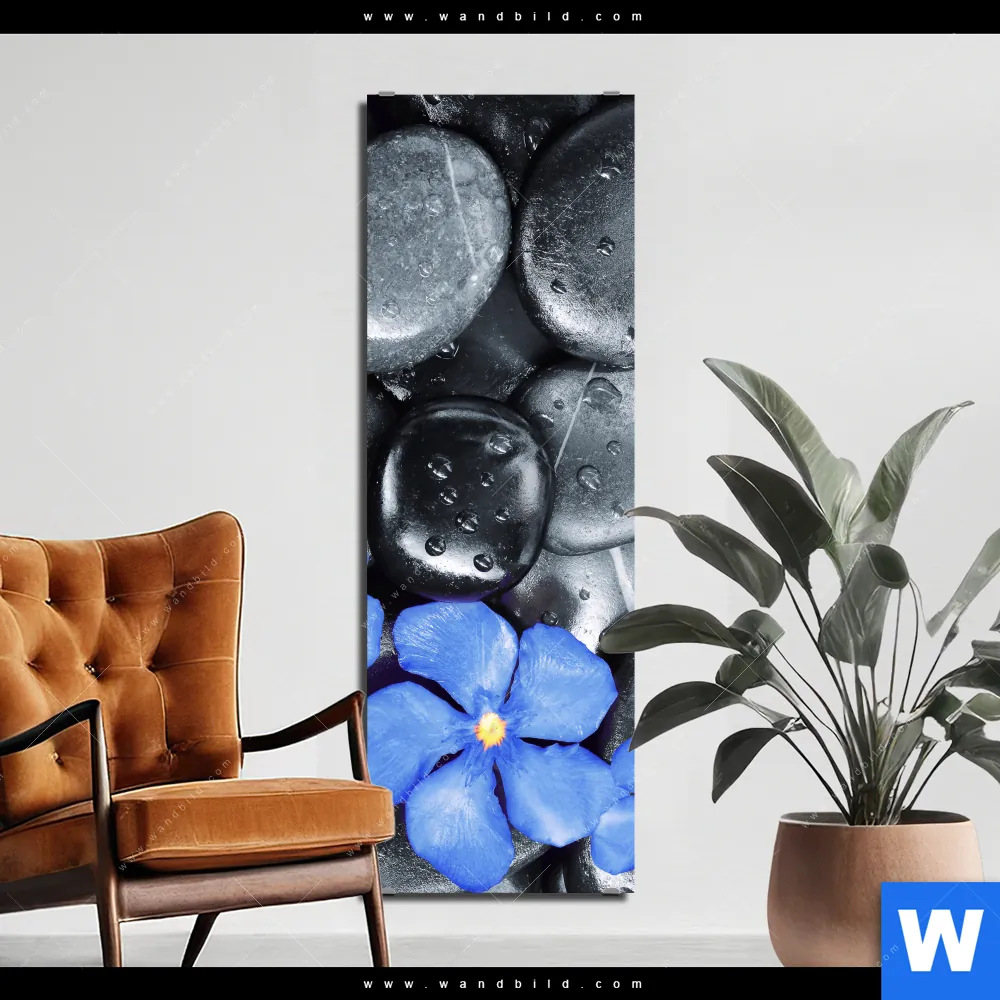 Alu-Dibond Bild | Blaue Blume & Graue Steine | Schmal