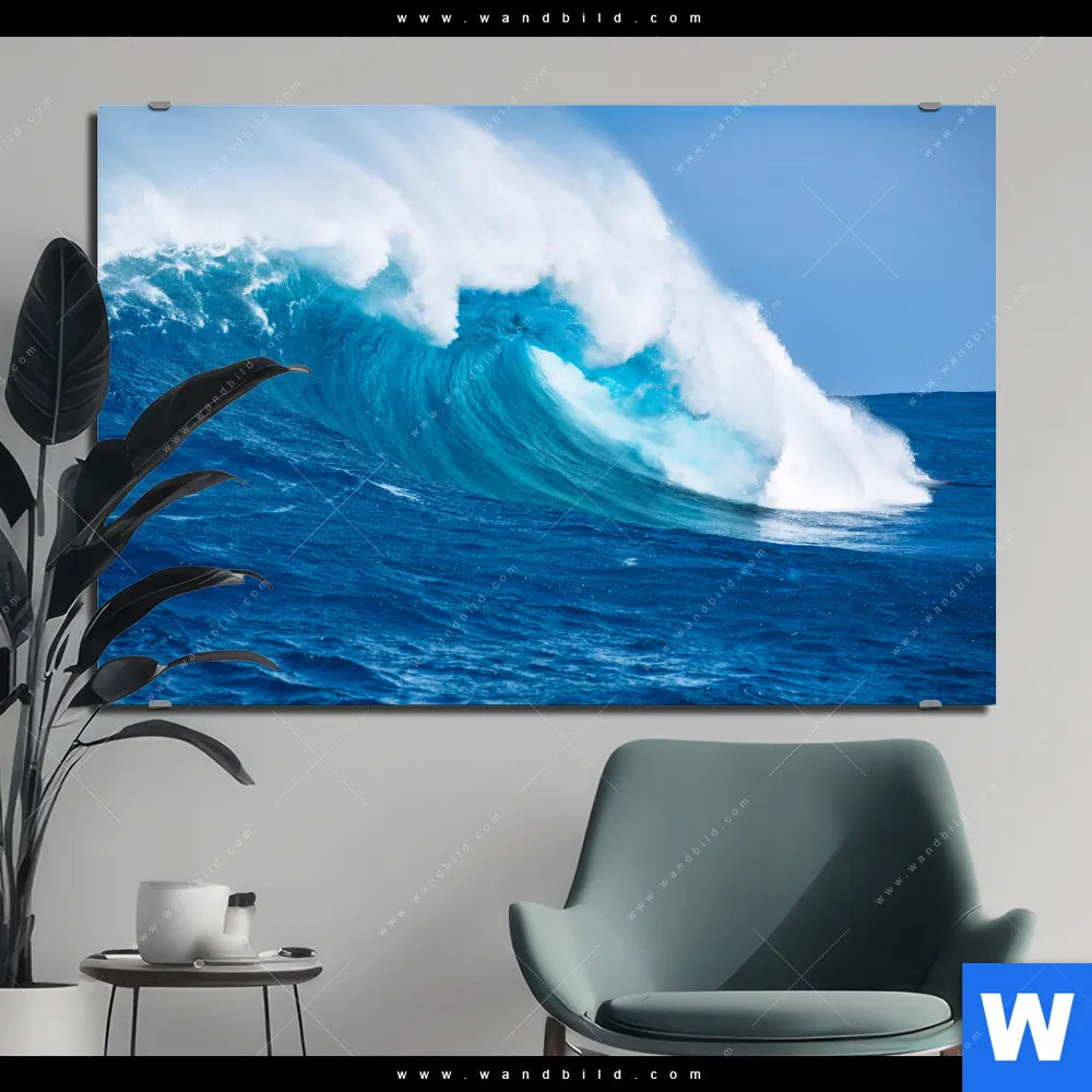 Alu-Dibond Bild | Blaue Welle im Meer | Querformat