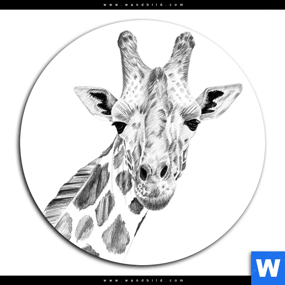 Alu-Dibond Bild | Bleistiftzeichnung Giraffe | Rund