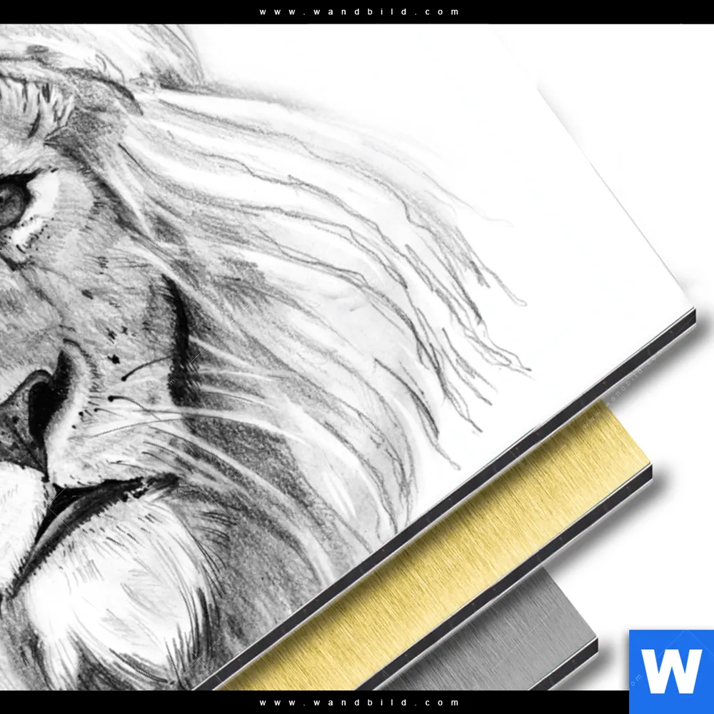 Alu-Dibond Bild | Bleistiftzeichnung Löwe | Querformat