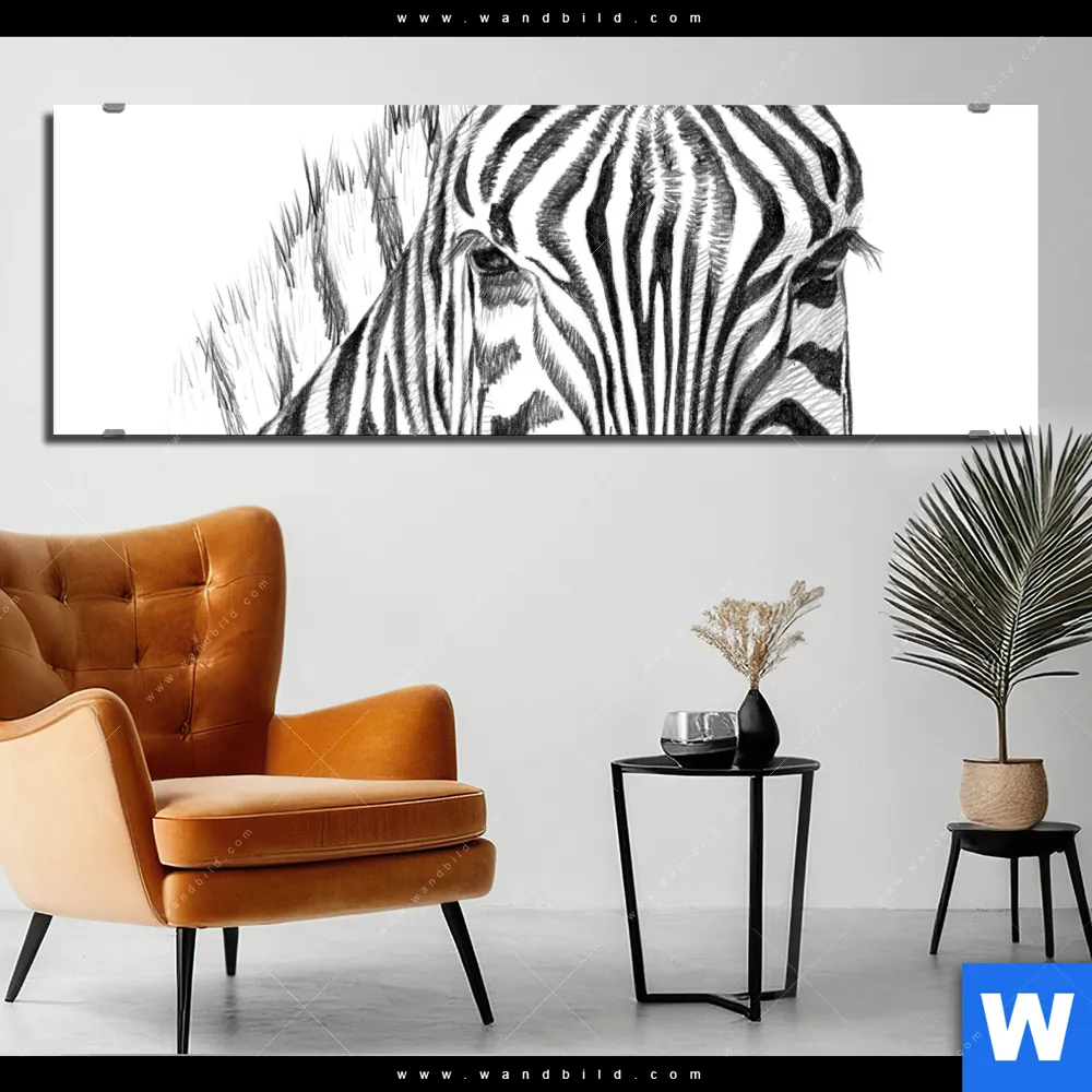 Alu-Dibond Bild | Bleistiftzeichnung Zebra | Panorama