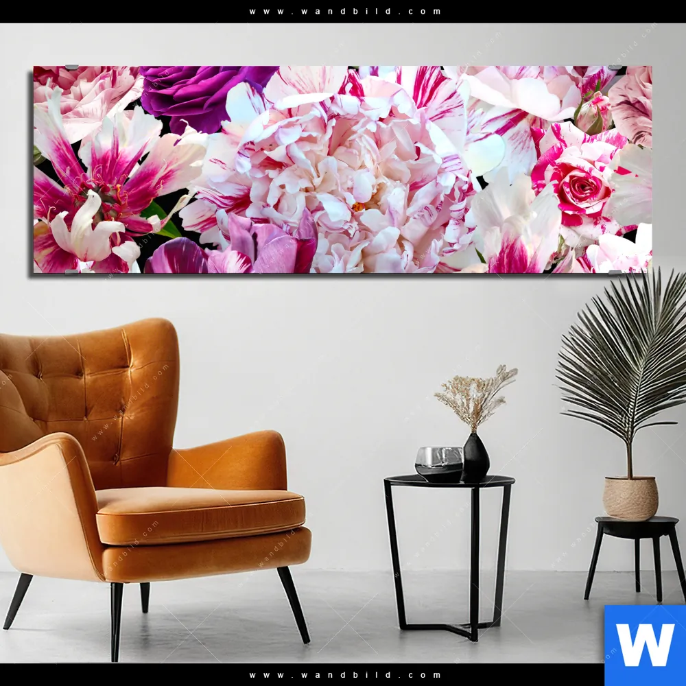 Alu-Dibond Bild | Blühende Pfingstrosen | Panorama