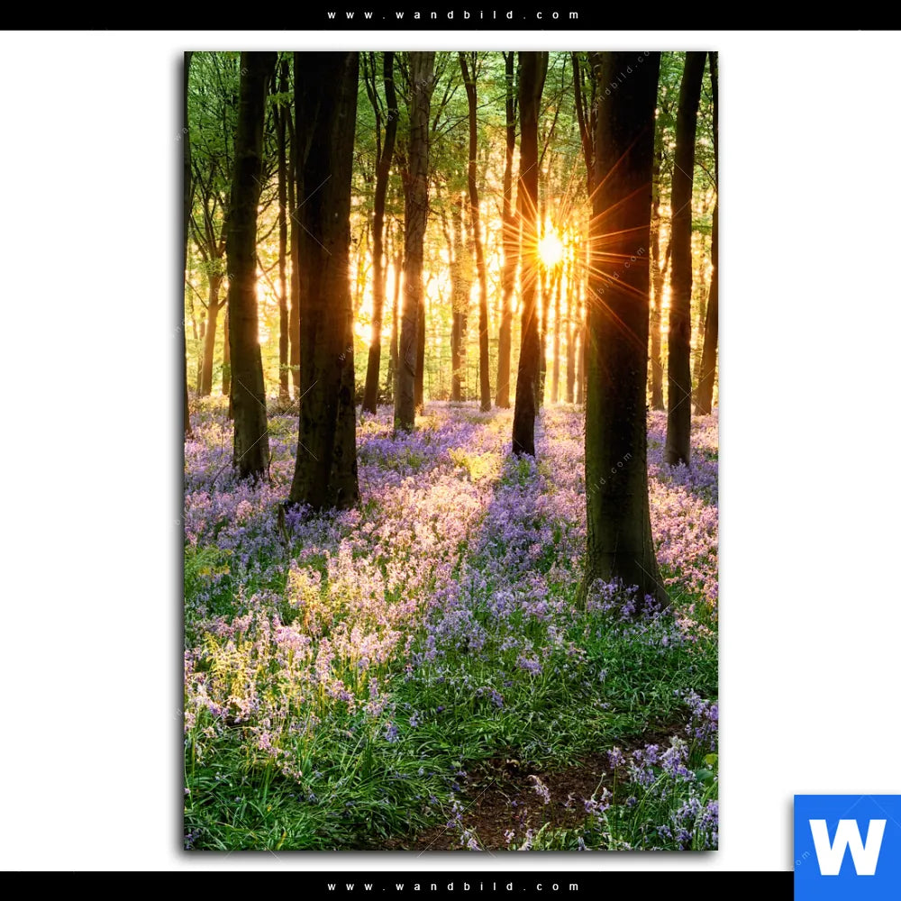 Alu-Dibond Bild | Blühender Wald bei Sonnenaufgang | Hochformat