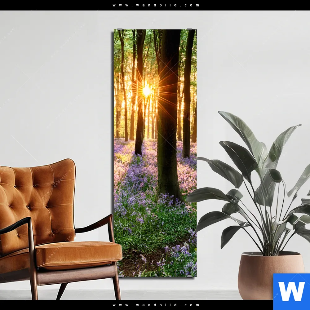 Alu-Dibond Bild | Blühender Wald bei Sonnenaufgang | Schmal