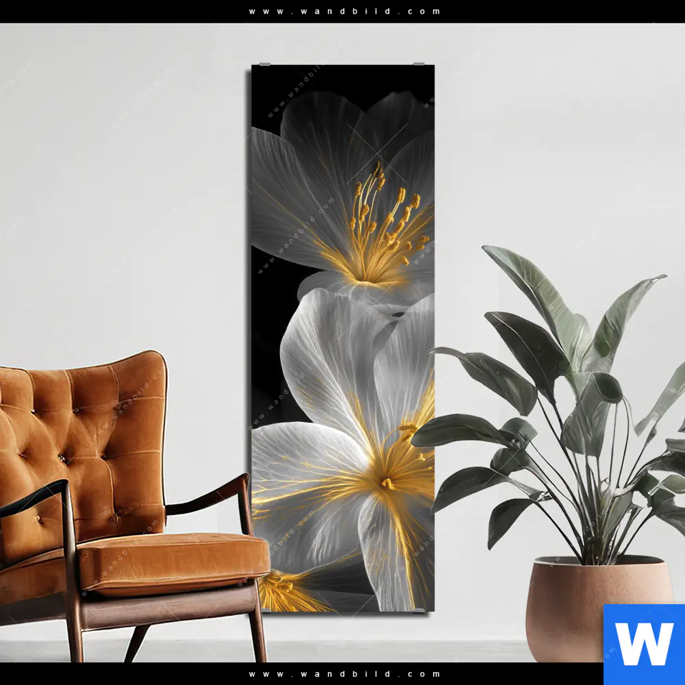 Alu-Dibond Bild | Blüten Gold & Weiß | Schmal