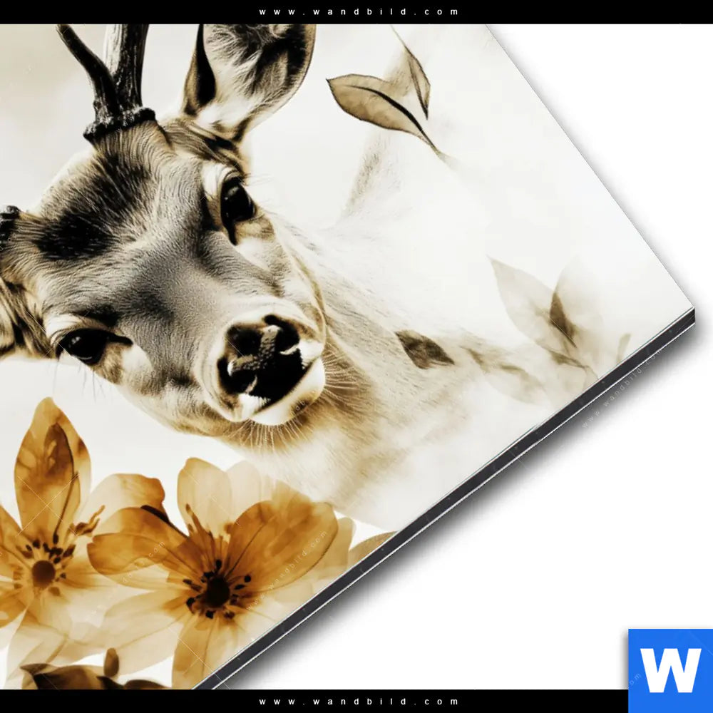 Alu-Dibond Bild | Blütenpracht trifft Geweih | Querformat