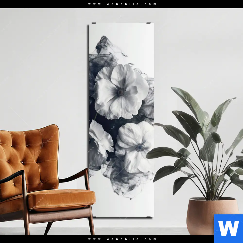 Alu-Dibond Bild | Blumen im schwarzen Farbnebel | Schmal