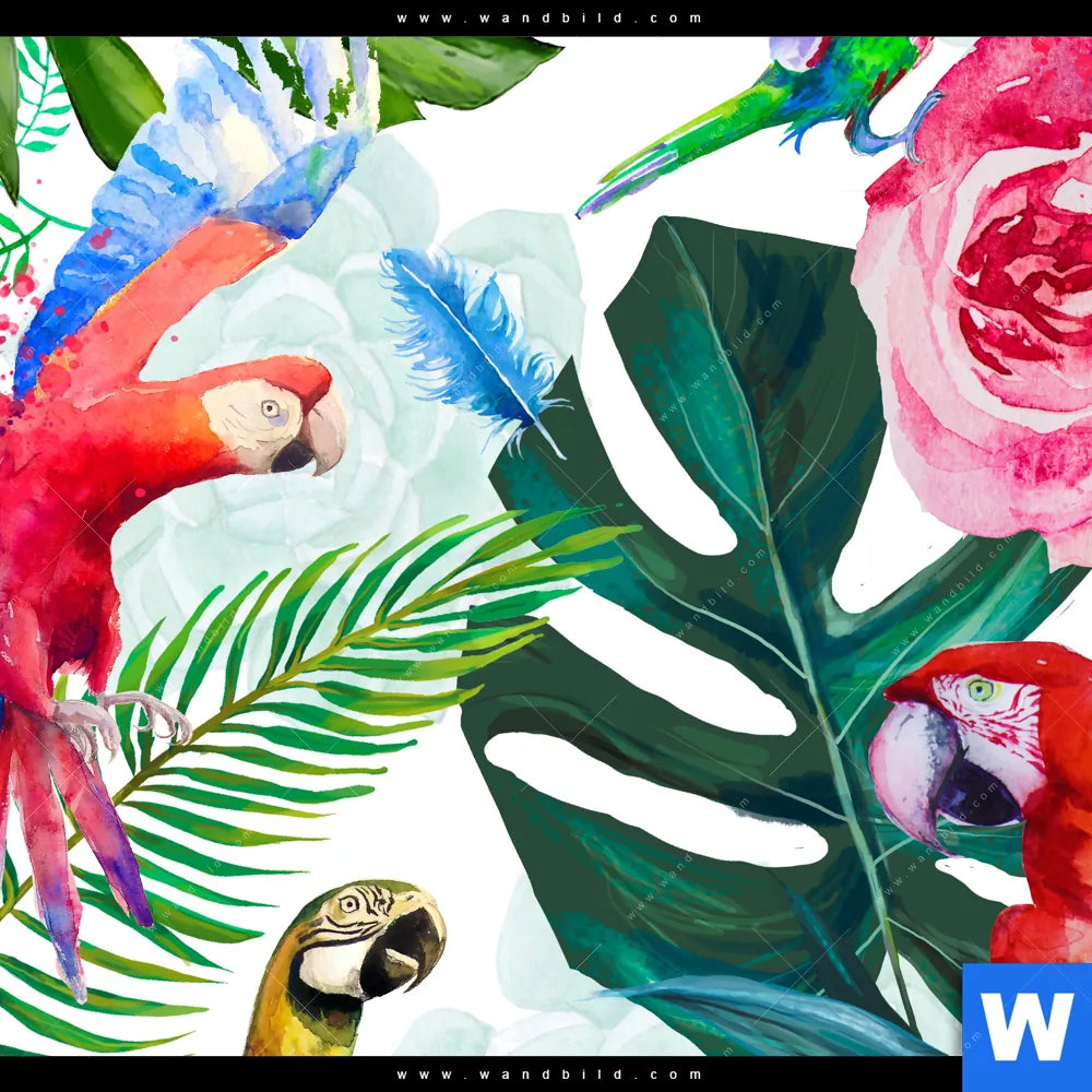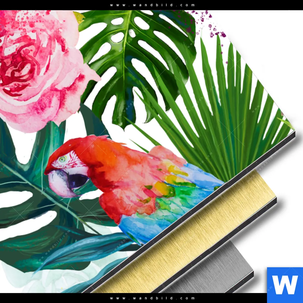 Alu-Dibond Bild | Blumen & Papageien Aquarell | Querformat