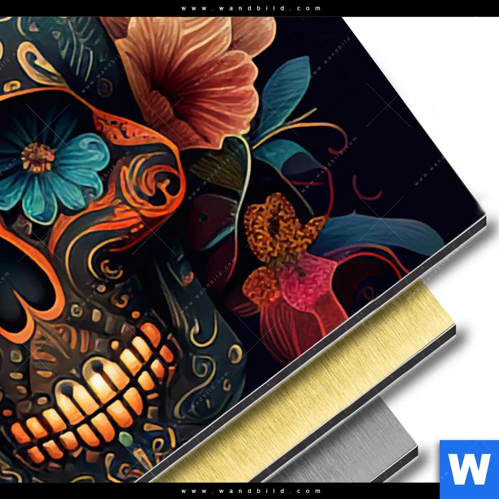 Alu-Dibond Bild | Blumenschädel schwarz | Querformat