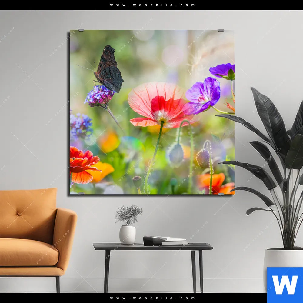 Alu-Dibond Bild | Blumenwiese mit Schmetterlingen | Quadrat