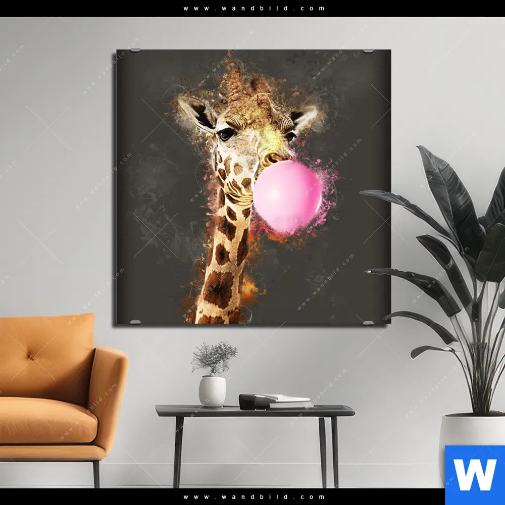 Alu-Dibond Bild | Bubble Gum Giraffe | Quadrat