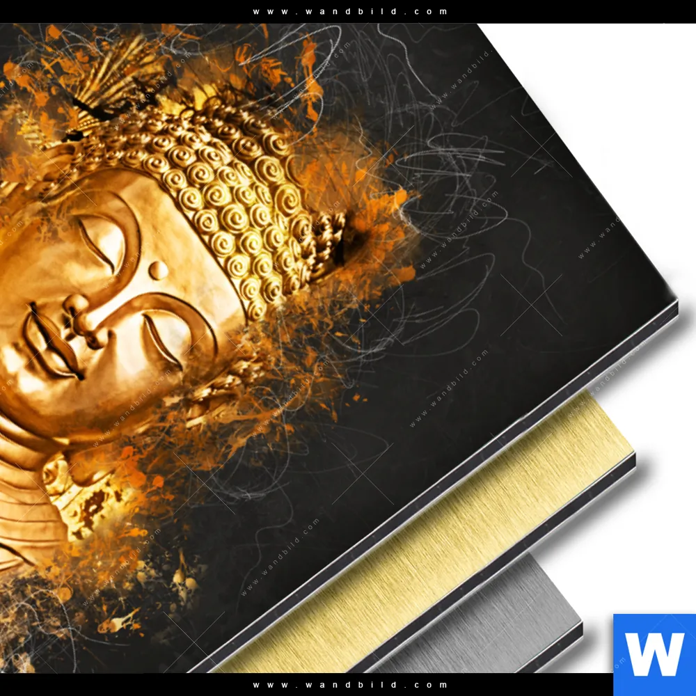 Alu-Dibond Bild | Buddha Golden Splash | Hochformat