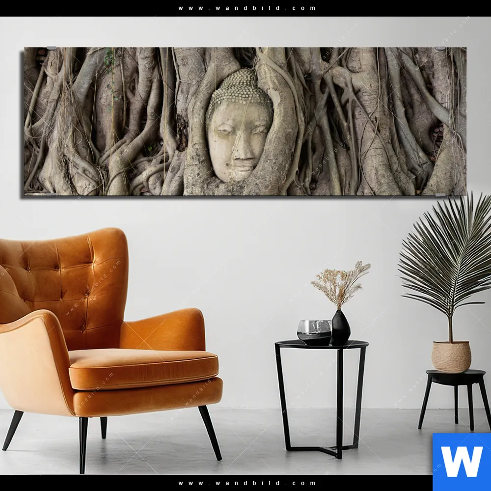 Alu-Dibond Bild | Buddha in Baumwurzeln | Panorama
