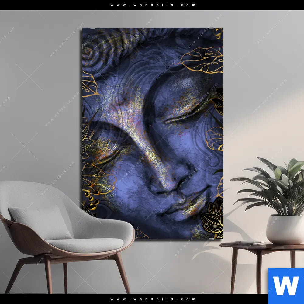 Alu-Dibond Bild | Buddha in Gold & Blau | Hochformat