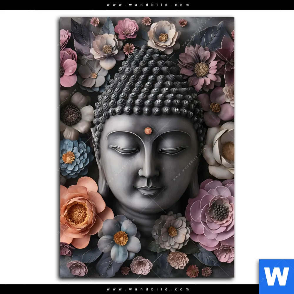 Alu-Dibond Bild | Buddha-Kunst mit Pastellblüten | Hochformat