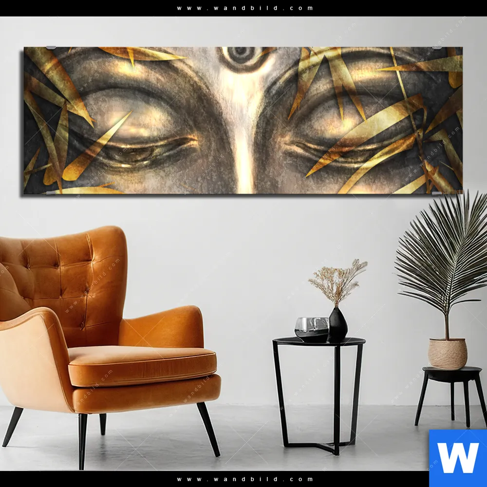 Alu-Dibond Bild | Buddha Silber & Gold | Panorama