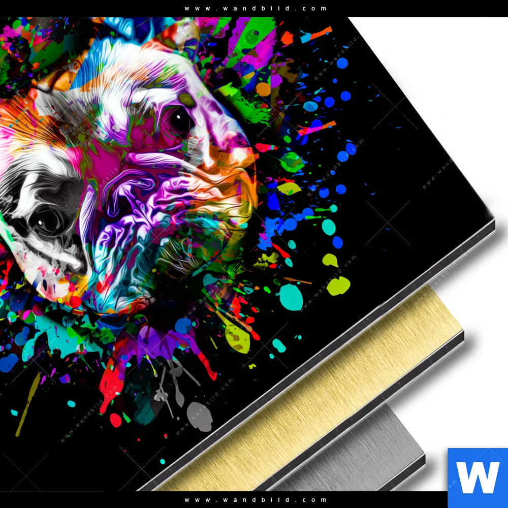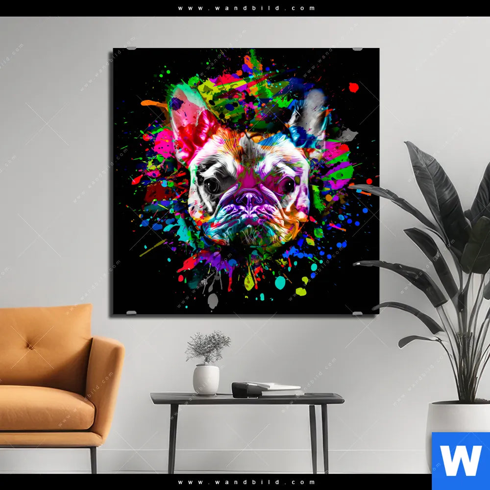 Alu-Dibond Bild | Bunte Bulldogge Schwarz | Quadrat