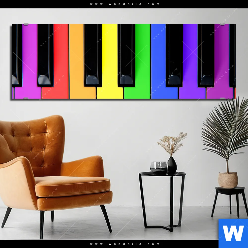 Alu-Dibond Bild | Bunte Klaviertasten | Panorama