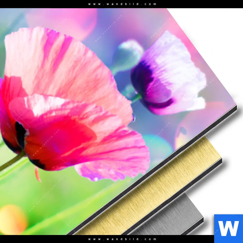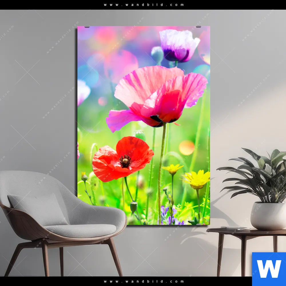 Alu-Dibond Bild | Bunte Mohnblumen | Hochformat