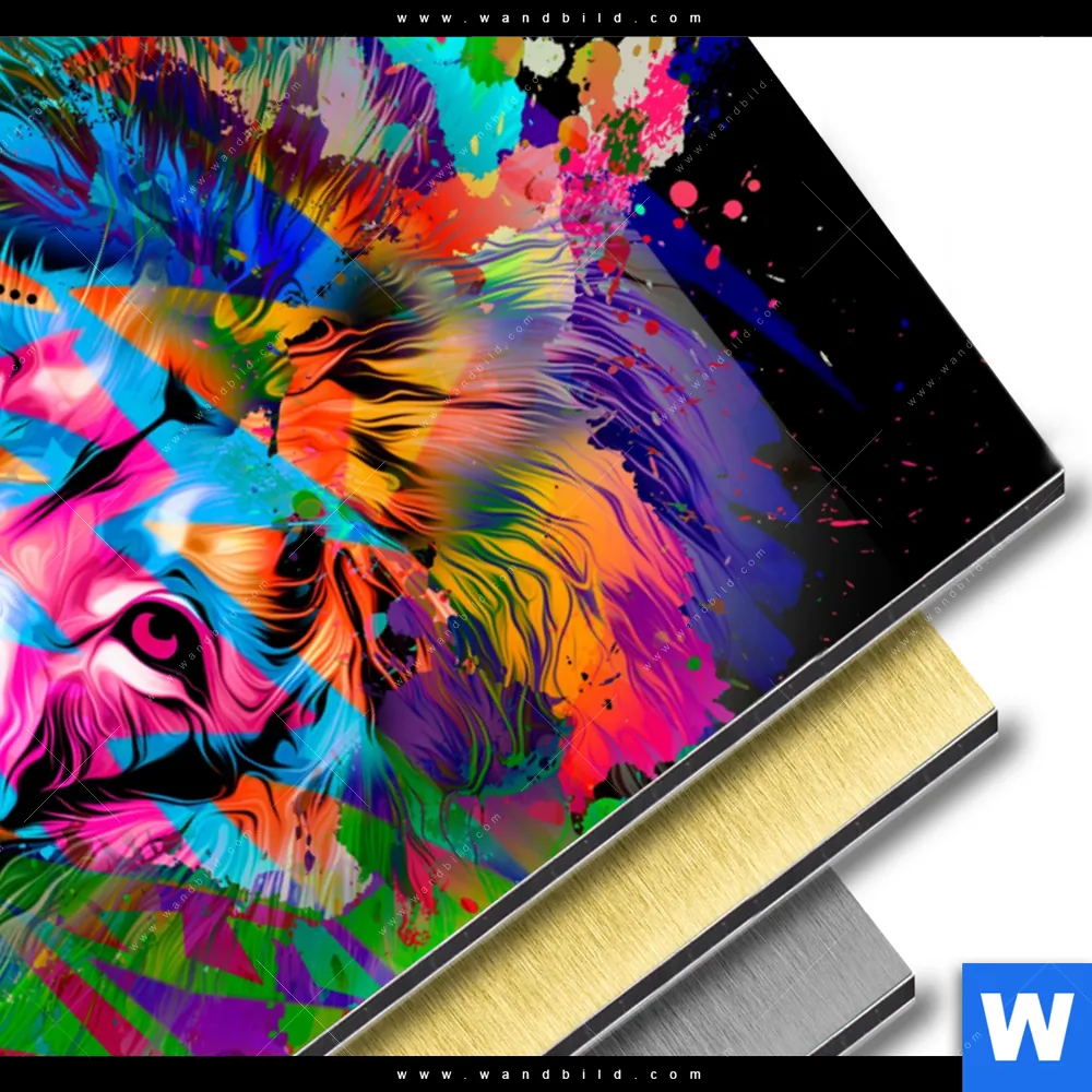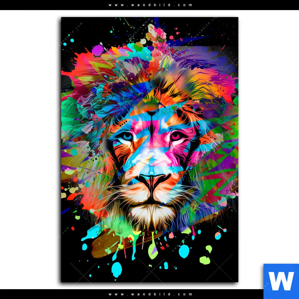 Alu-Dibond Bild | Bunter Löwe Schwarz | Hochformat