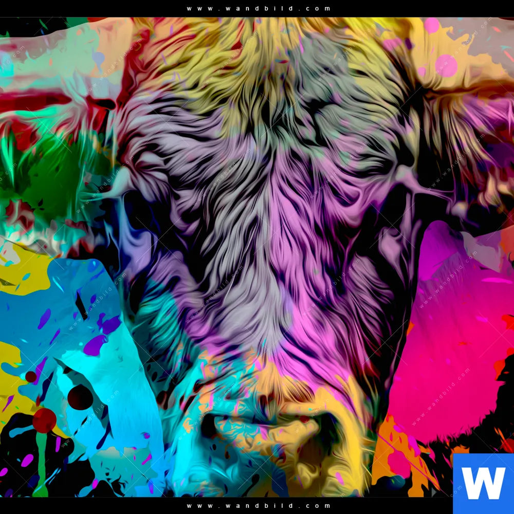 Alu-Dibond Bild | Bunter Stier Schwarz | Schmal