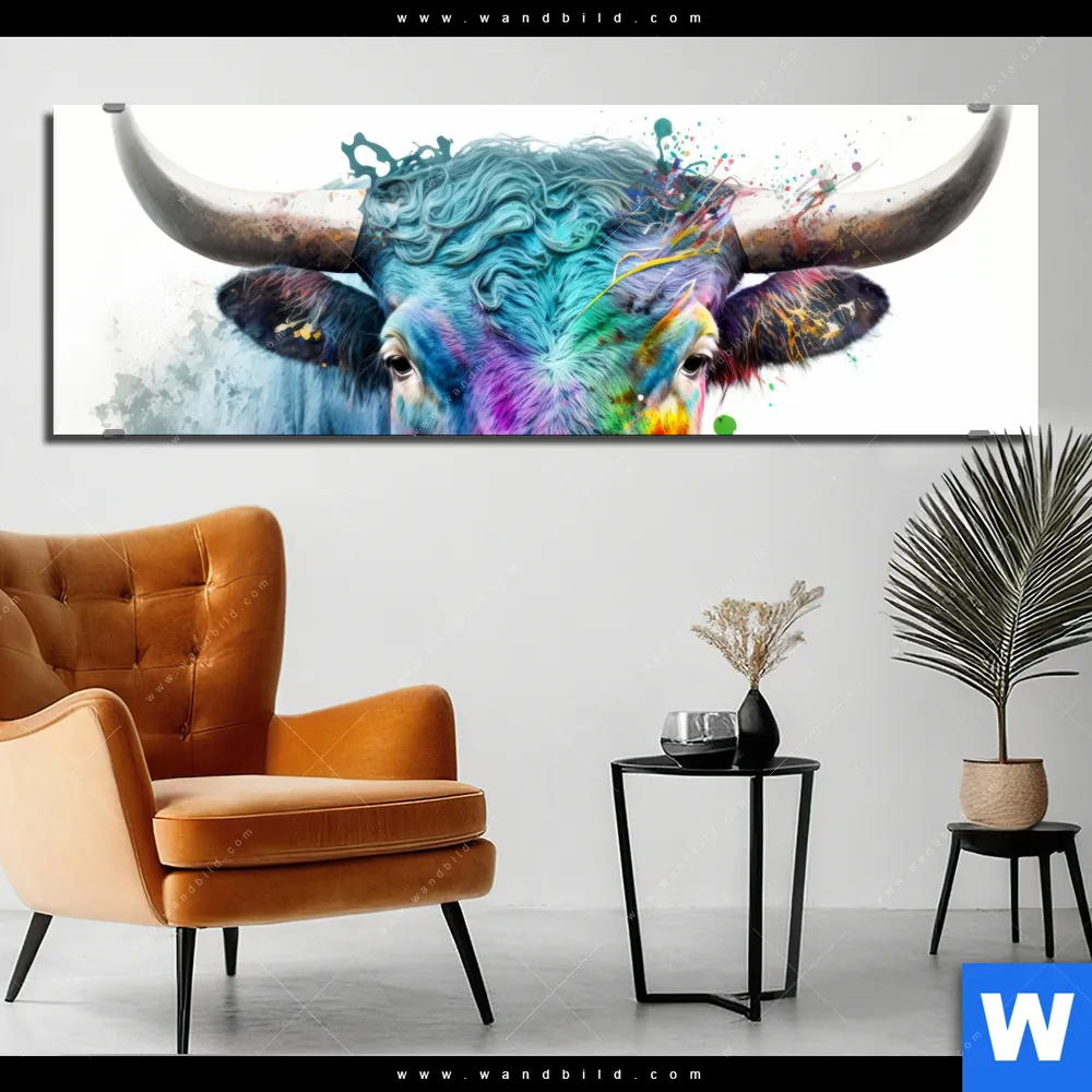 Alu-Dibond Bild | Bunter Stierkopf | Panorama
