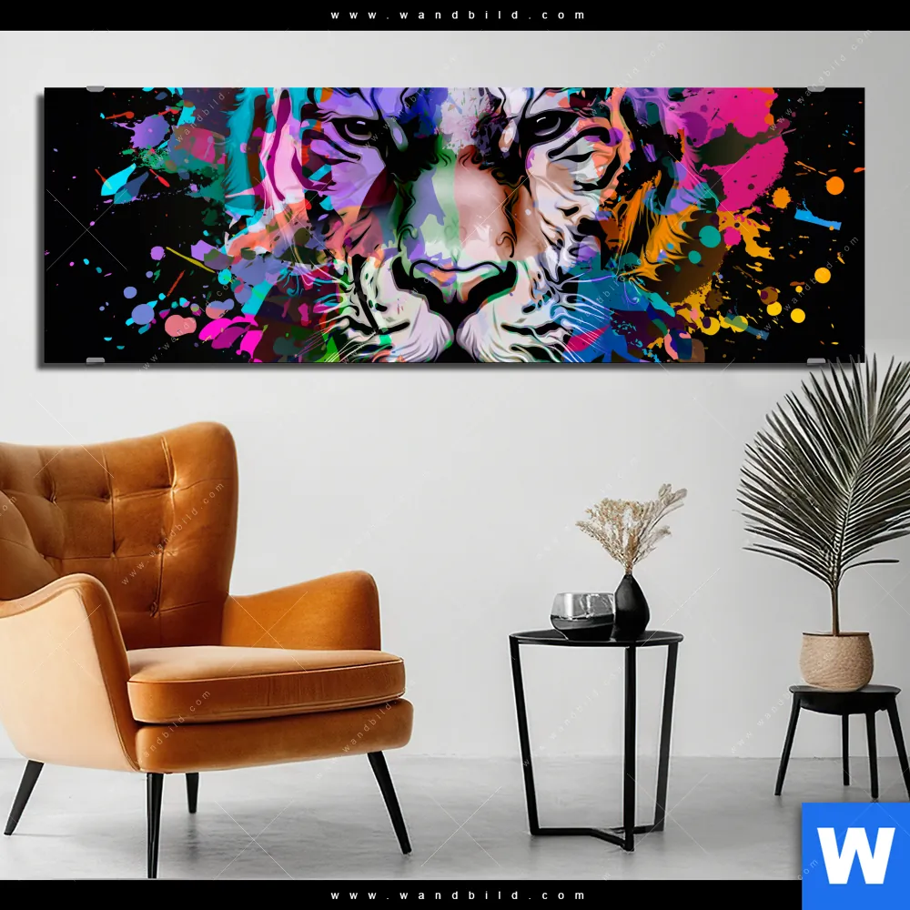 Alu-Dibond Bild | Bunter Tiger Schwarz | Panorama