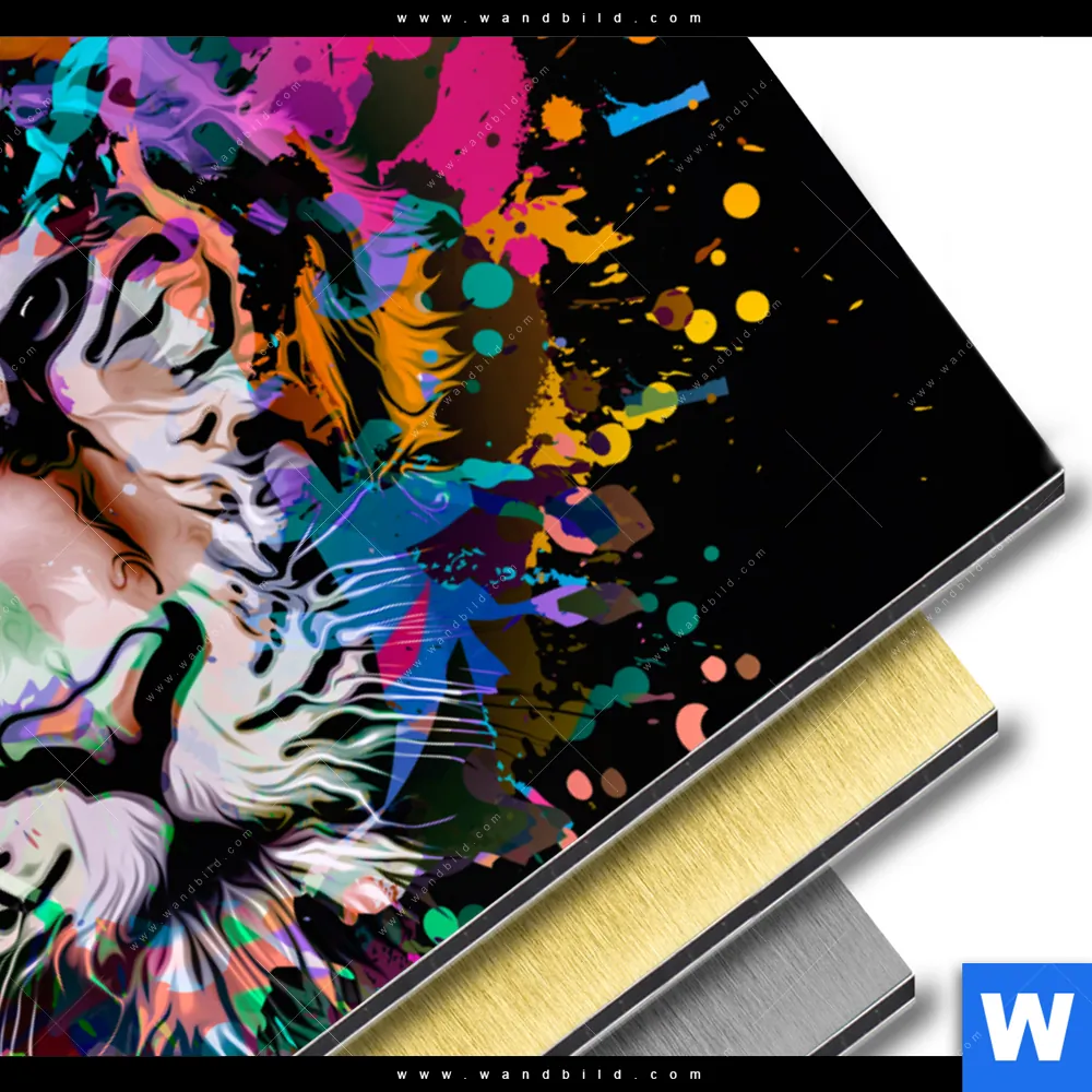 Alu-Dibond Bild | Bunter Tiger Schwarz | Querformat