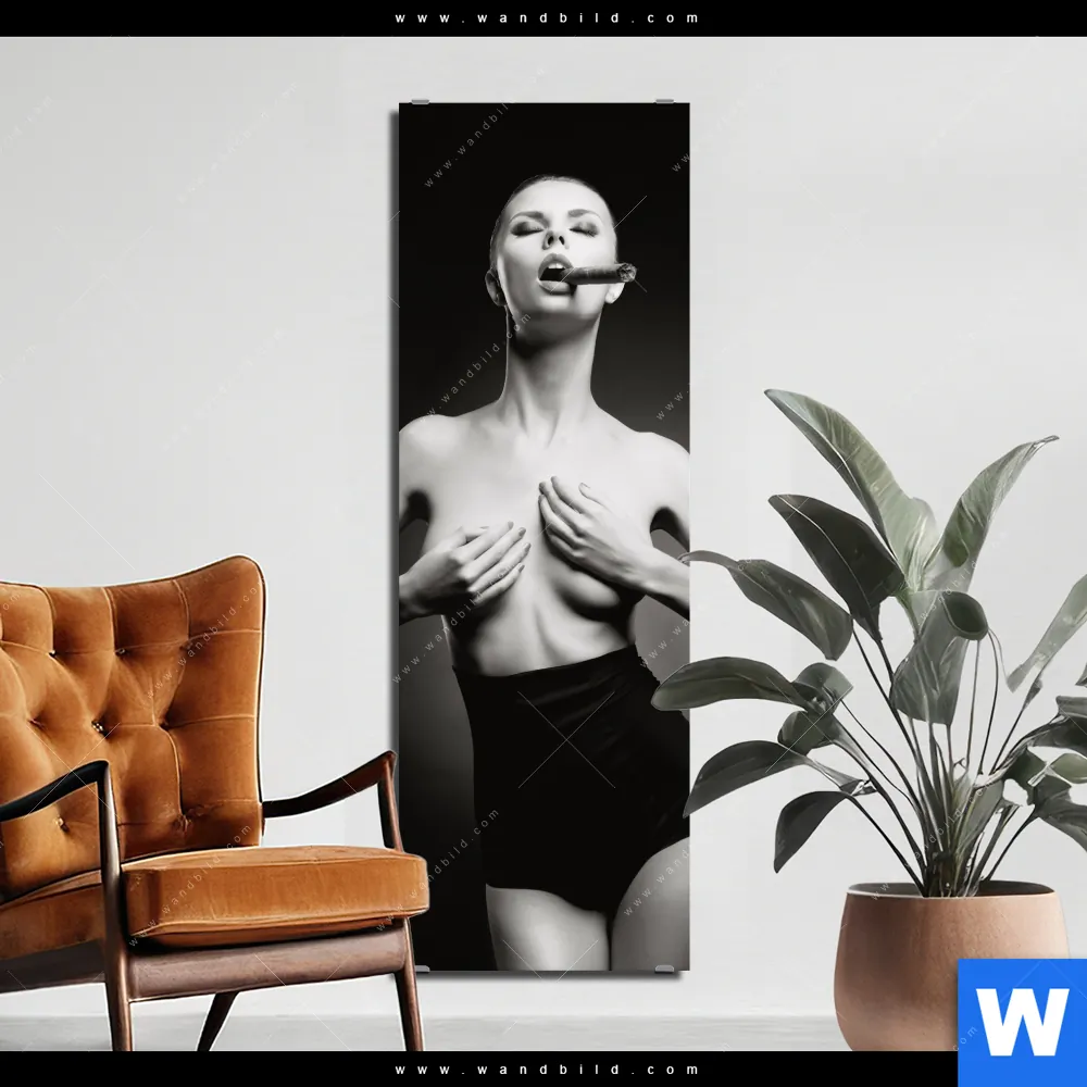Alu-Dibond Bild | Dame mit Zigarre | Schmal