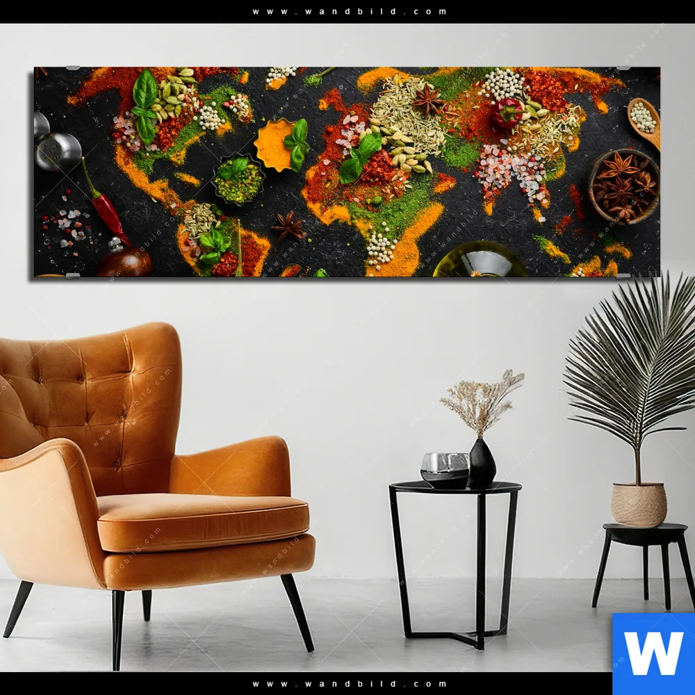 Alu-Dibond Bild | Die Weltkarte der Gewürze | Panorama