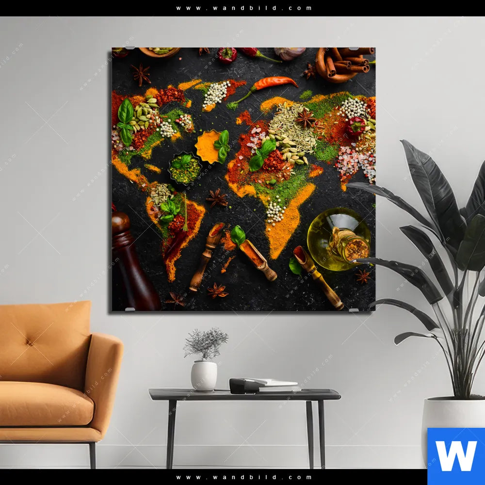 Alu-Dibond Bild | Die Weltkarte der Gewürze | Quadrat